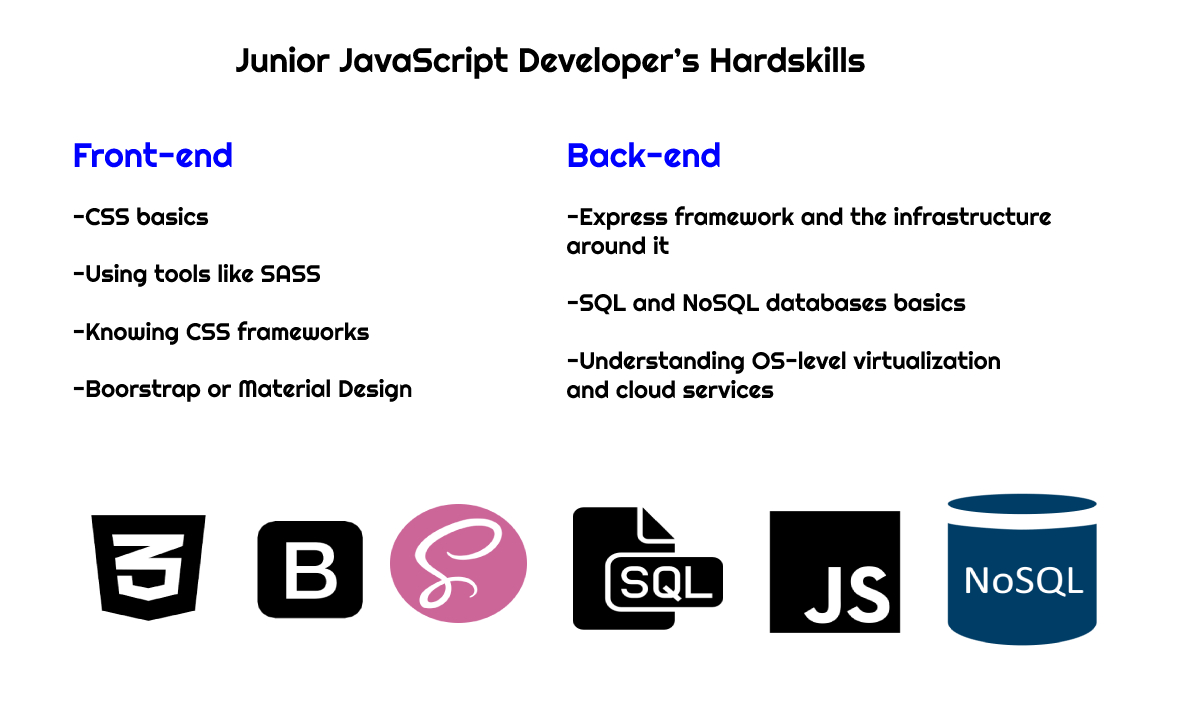 If you choose the Back-end development path, you must know well how works Express framework, what is the infrastructure around it; knowing the SQL (f.e., PostgreSQL) and NoSQL (f.e., MongoDB) databases basics is also crucial, as well as understanding what is OS-level virtualization, and cloud services.
